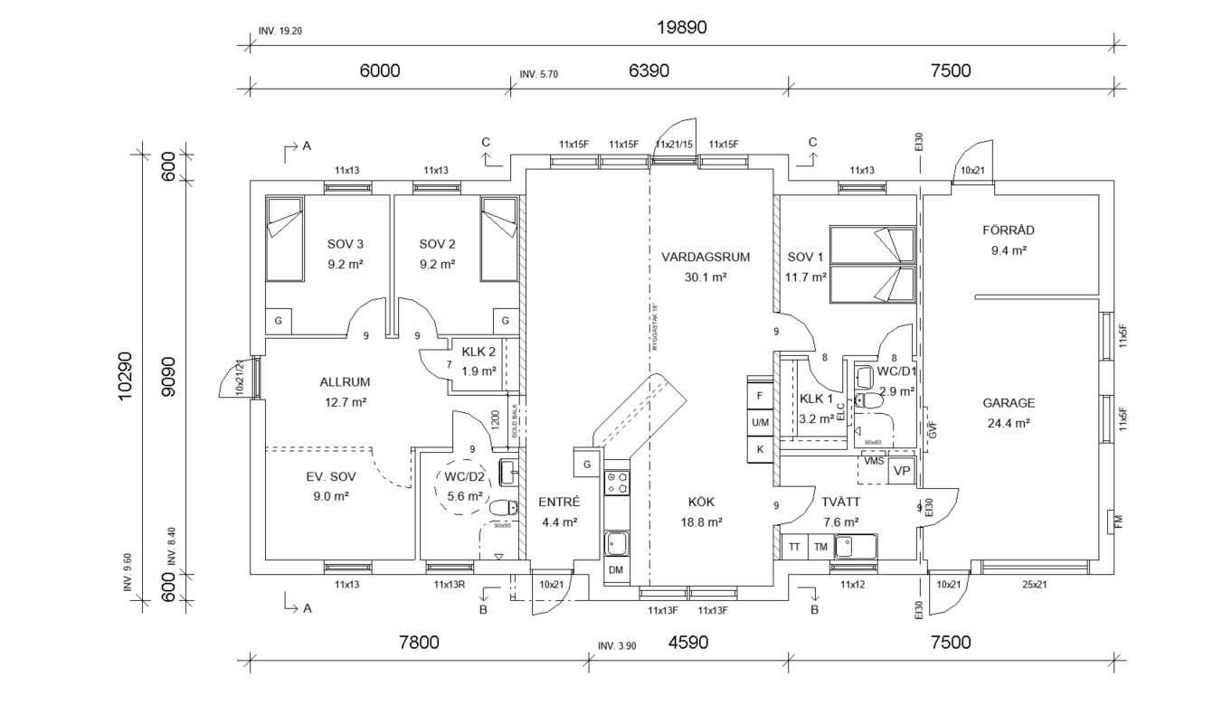 Hus 1352 är ett enplanshus med en boyta på 131,8kvm och en mycket praktisk planlösning.