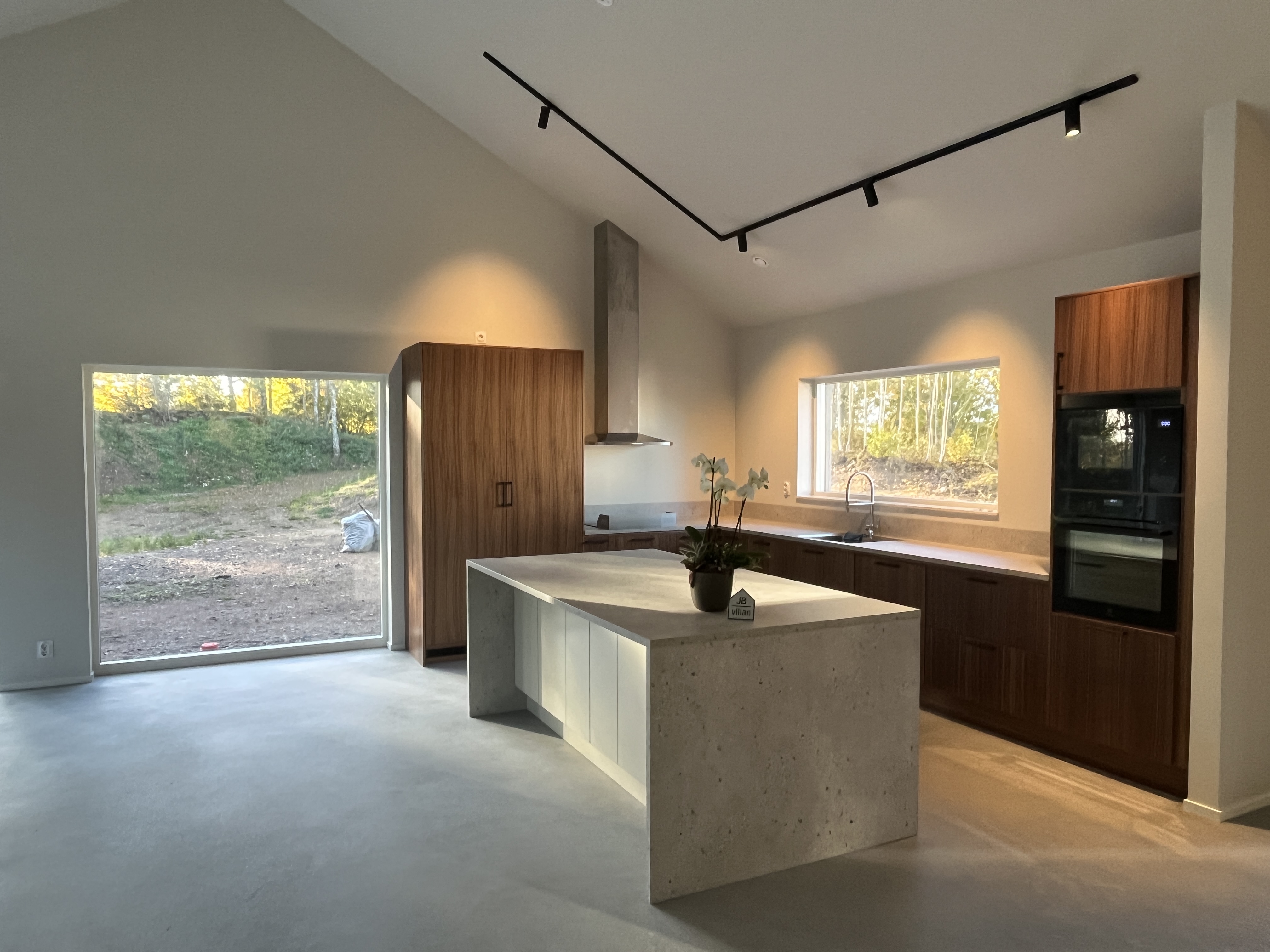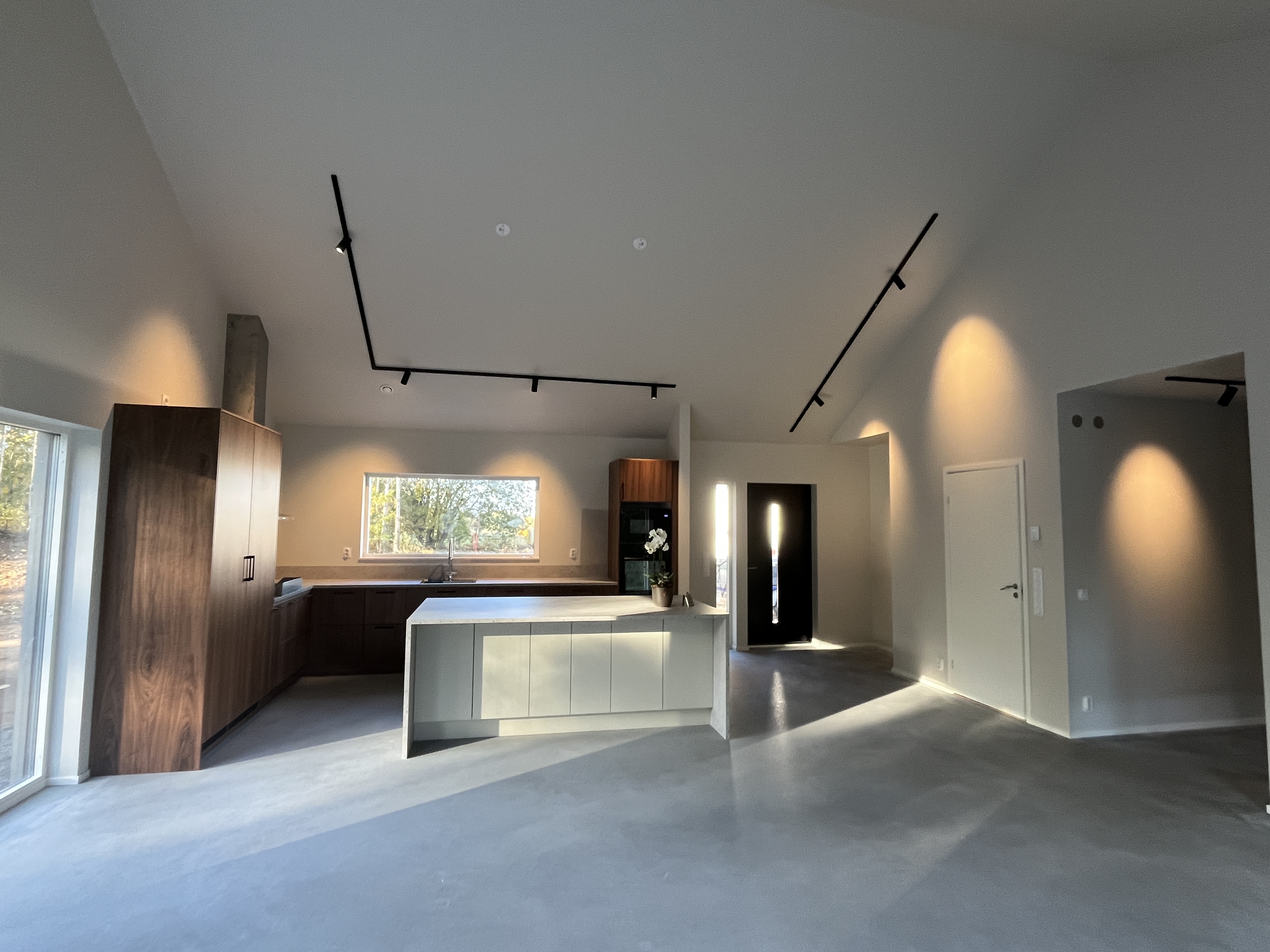 En flexibel och smart planerad bostad med moderna materialval och framtida möjlighet till loft.