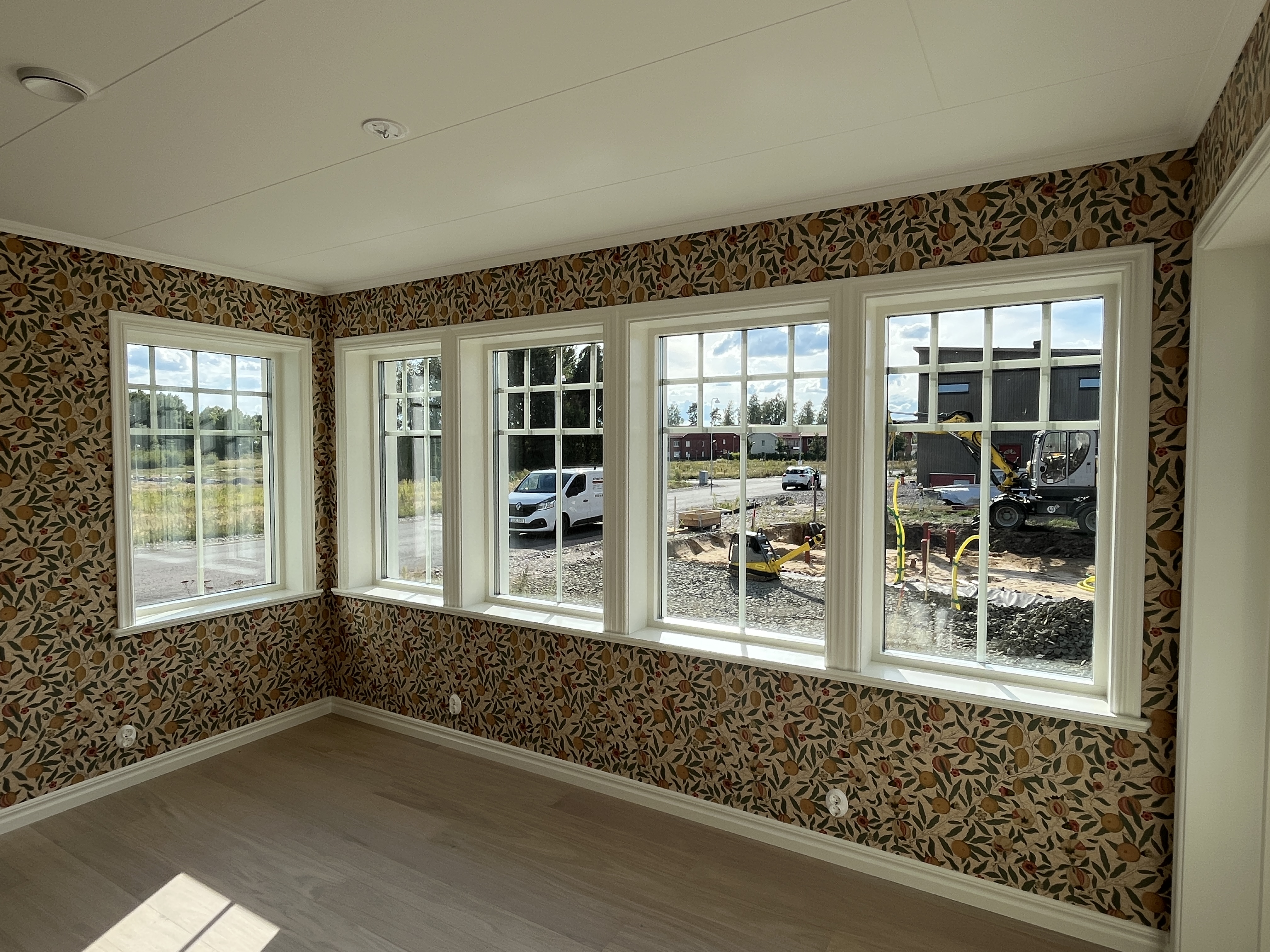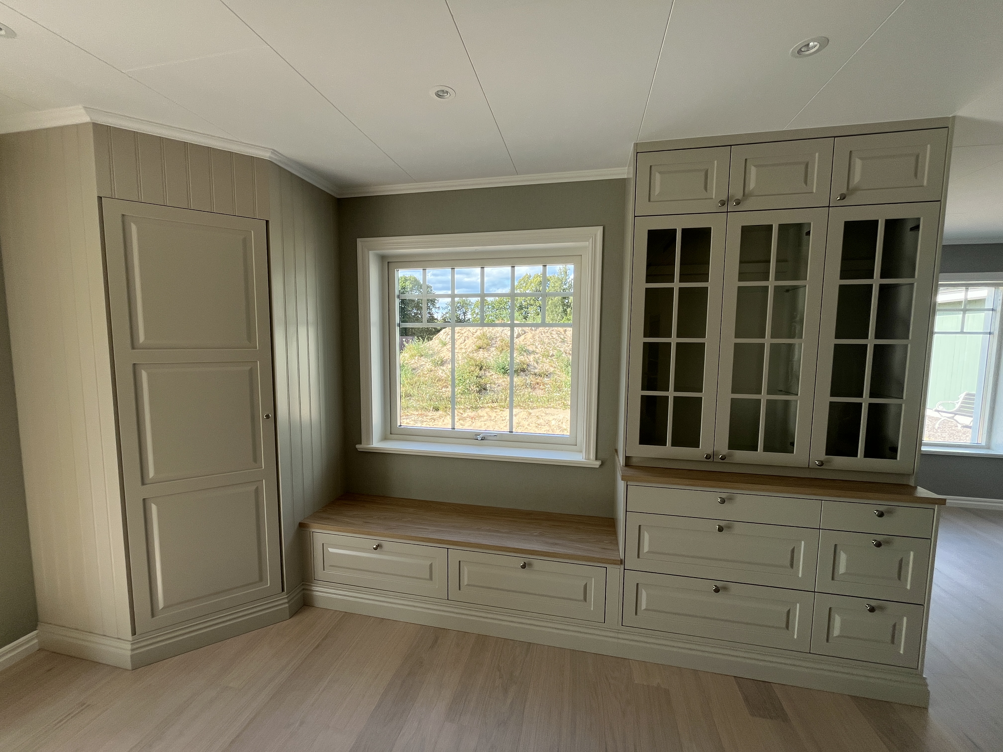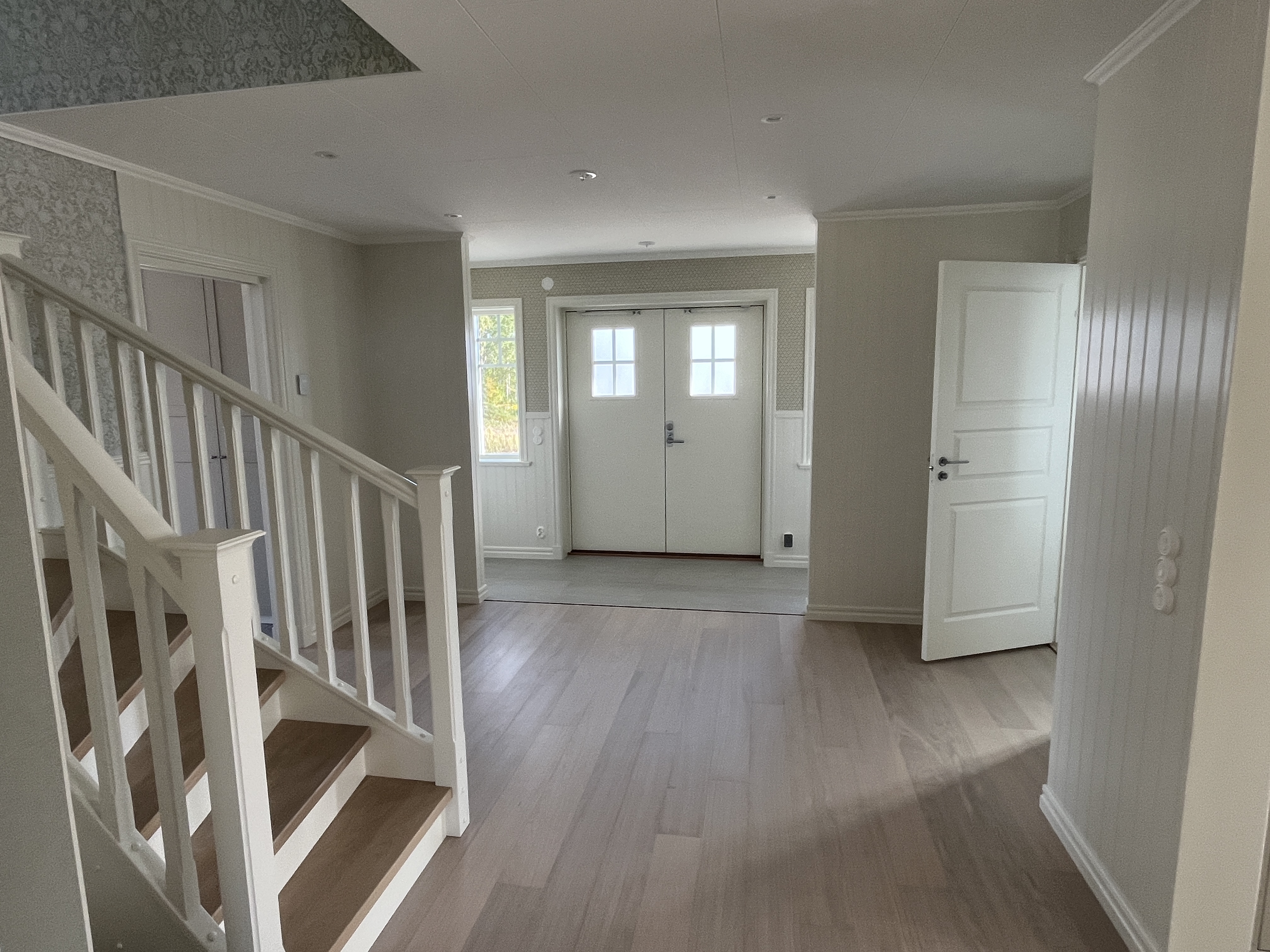 Den ljusgröna fasaden med de vita detaljerna ger en klassisk, tidlös känsla!